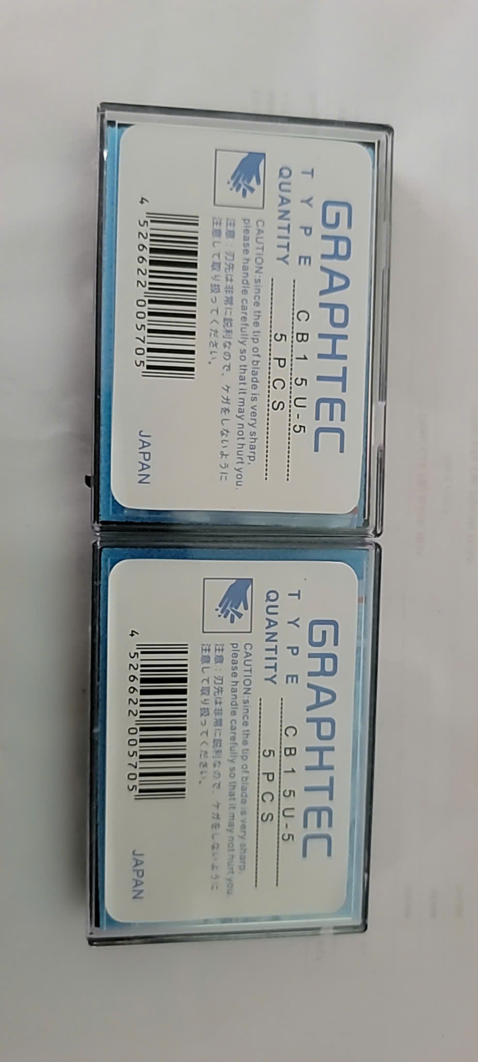 - Dao được đóng với 5 lưỡi dao trong 1 hộp có vật liệu giảm chấn, bề mặt hộp có ghi xuất xứ, số lượng, tem mã vạch của sản phẩm