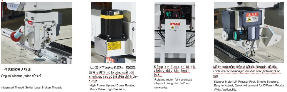- Người vận hành chỉ cần đặt mẫu vào khung và nhấn nút, không cần kỹ năng may chuyên sâu.