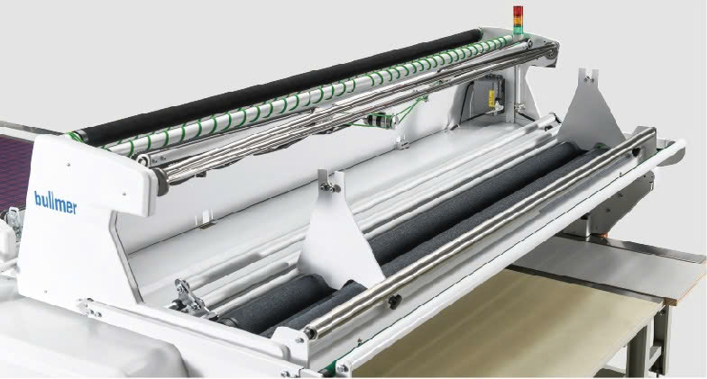 Kiểm soát sức căng (Tension Control): Đây là ưu điểm lớn nhất của Bullmer. Máy sử dụng hệ thống băng tải cấp vải đồng bộ với tốc độ di chuyển, đảm bảo vải được trải phẳng mà không bị co giãn hay nhăn, đặc biệt quan trọng với các loại vải thun hoặc vải nhạy cảm.