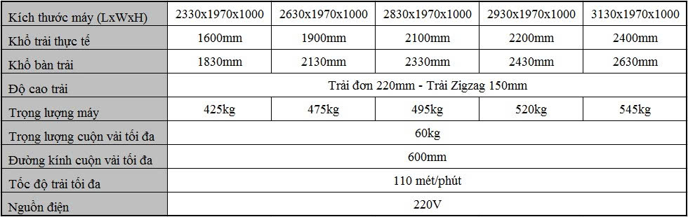 Thông số kỹ thuật Máy trải vải tự động Bullmer KW2000E-A
