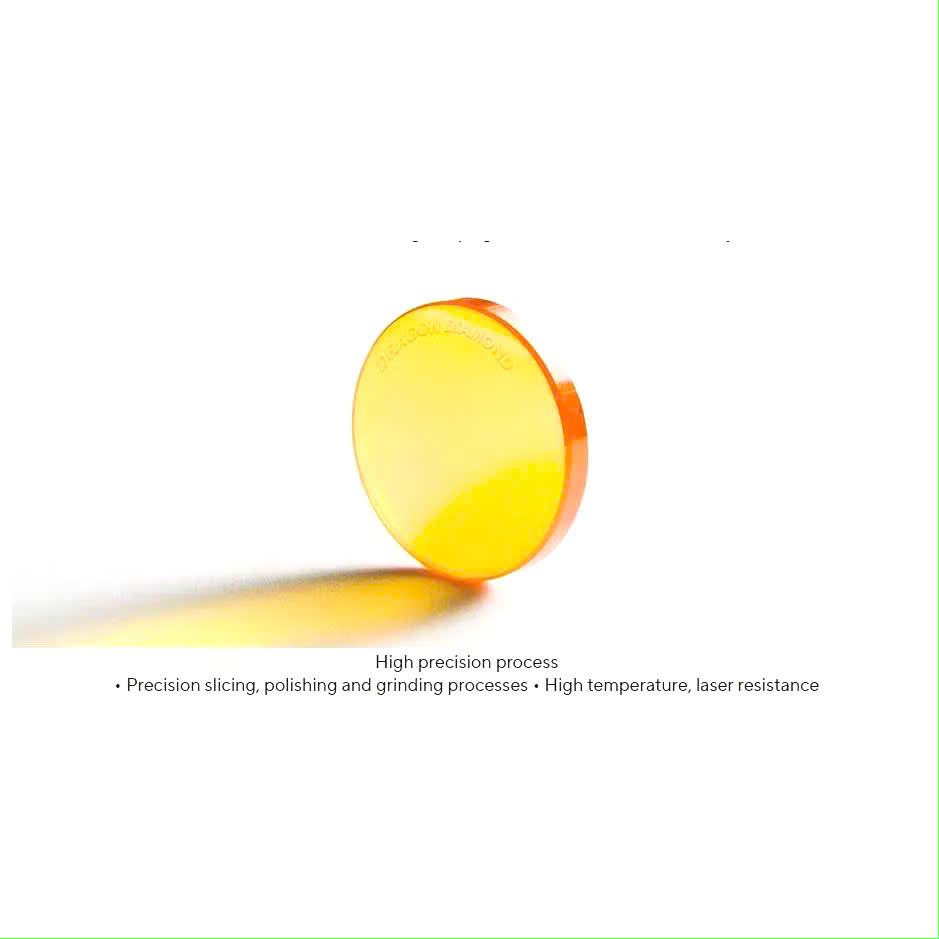 - Thấu kính được làm từ vật liệu ZnSe (Kẽm selenide) trong suốt, đây là vật liệu được sử dụng rộng rãi nhất do khả năng truyền ánh sáng tốt và độ ổn định nhiệt cao.